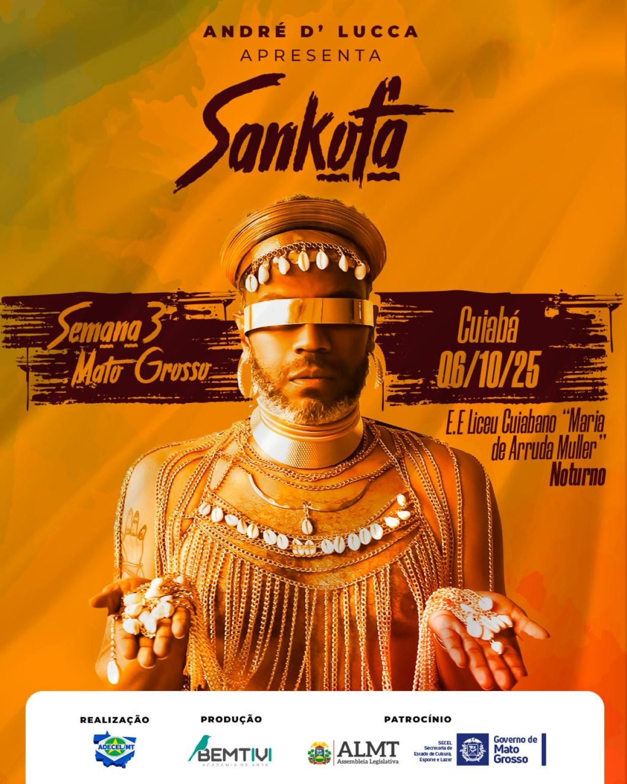 Até o dia 10 de outubro, Cuiabá será palco de um dos projetos mais impactantes do teatro mato-grossense: SANKOFA, idealizado e protagonizado pelo ator e diretor André D’Lucca, trazendo o letramento racial para a rede pública de Ensino. Com sessões gratuitas, a estreia será na Escola Estadual Liceu Cuiabano. O projeto convida a uma profunda jornada de reconexão com a história e a identidade afro-brasileira. Aquela que, muitas vezes, os livros ignoram, mas que o teatro resgata com potência e sensibilidade. Esta é a segunda temporada do ano.