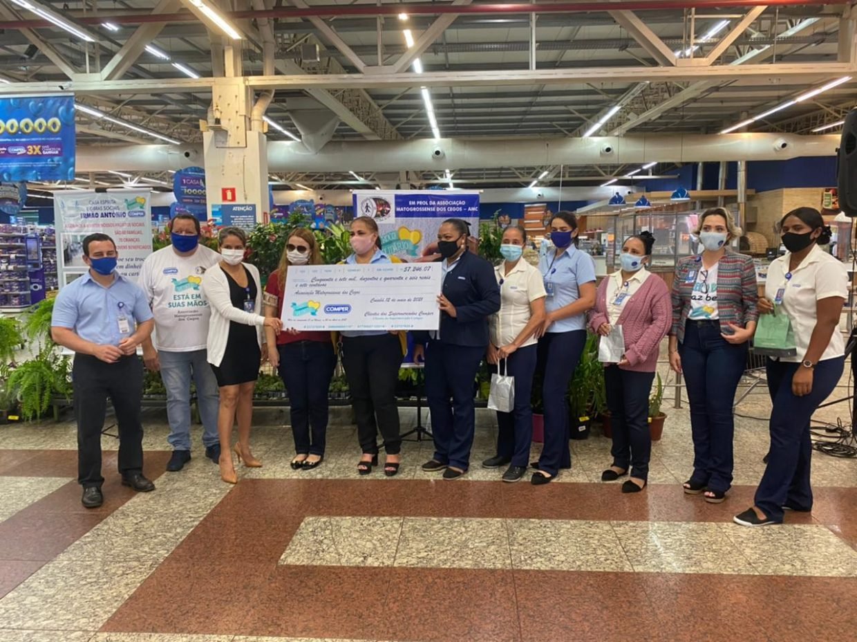 A rede Comper de Supermercados entregou à Associação Mato-grossense dos Cegos (AMC) um cheque de R$ 57.246,07 do projeto Troco Solidário com as arrecadações feitas entre março e abril. O trabalho social realizado pela empresa beneficiou mais de 70 instituições, em 13 anos de campanha, com o apoio de clientes e funcionários.