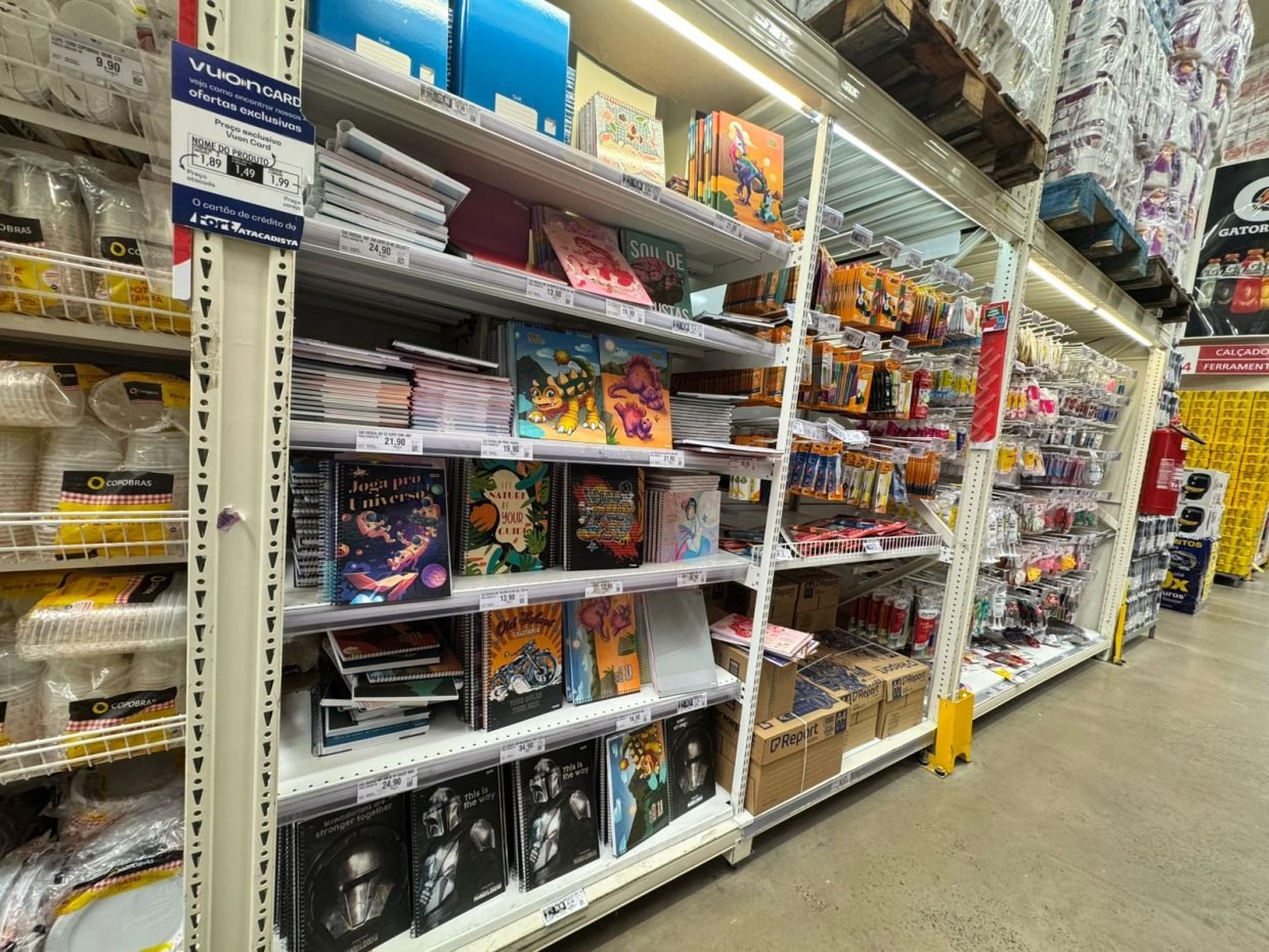 Alguns itens de material escolar estão sempre disponíveis no Fort Atacadista ao longo do ano. No período de “Volta às Aulas”, os responsáveis precisam rebolar entre as férias das crianças, o trabalho fora de casa e as responsabilidades domésticas para garantir economia na hora de adquirir produtos com bom preço antes do início do ano letivo.