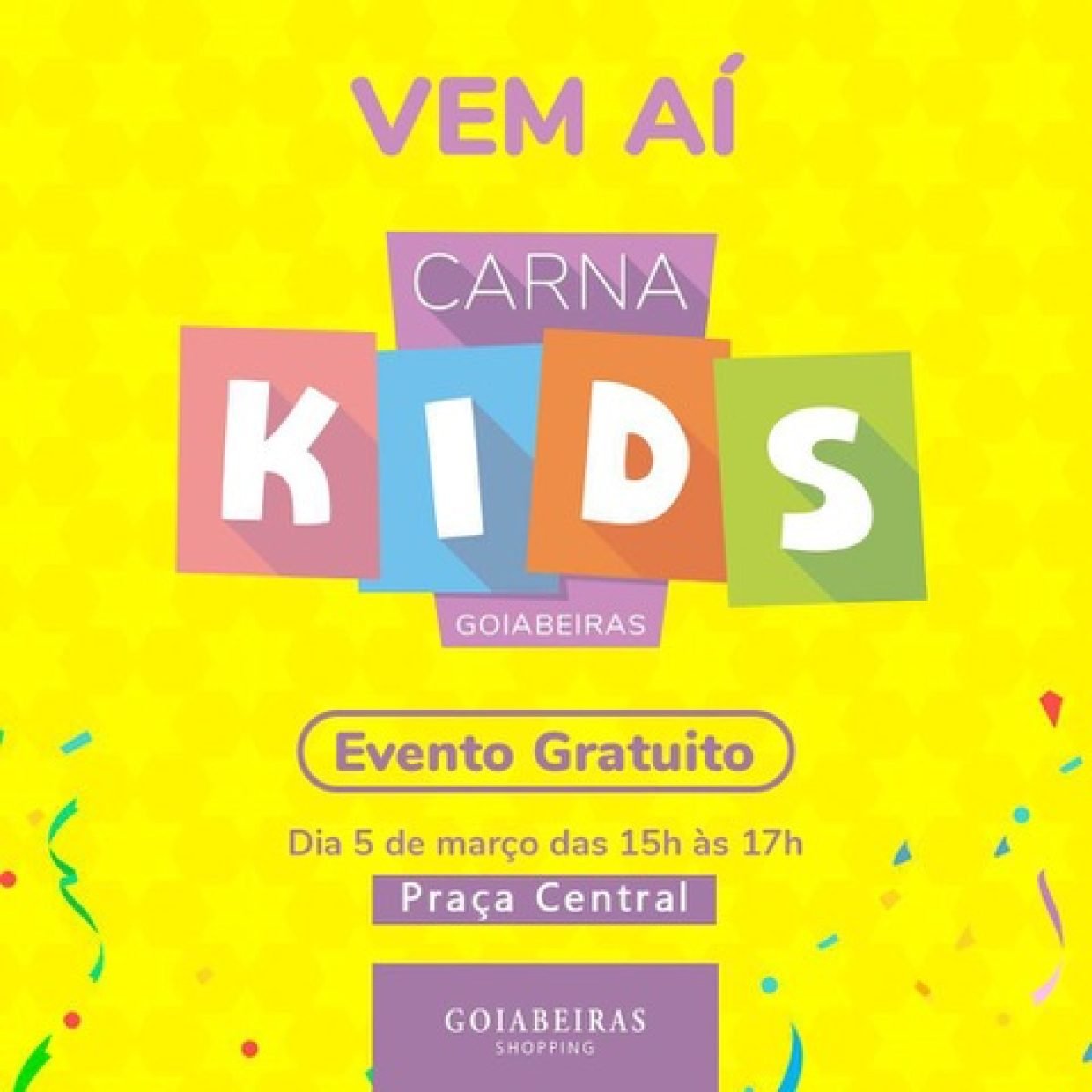 Brincadeiras e guloseimas vão alegrar a terça-feira de Carnaval (05.03) dos pequenos no Carna Kids Goiabeiras. A entrada é gratuita e a folia com a Tia Hanna começa às 15h e segue até às 17h, na Praça Central do mall.