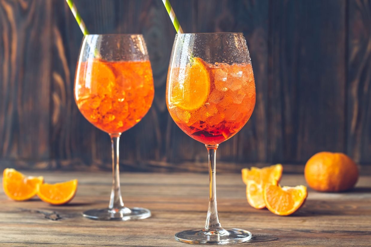 Em uma taça, coloque gelo, adicione uma dose generosa de Aperol, em seguida acrescente soda ou água com gás. Depois, despeje o espumante e misture bem. Finalize com uma fatia fina de laranja.