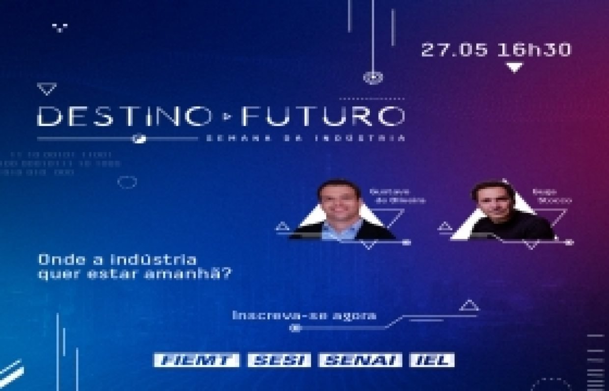 Ajudar a construir o melhor futuro possível para o segmento industrial é a proposta da Federação das Indústrias de Mato Grosso (Fiemt) que realiza nesta semana um evento alusivo ao dia do setor, celebrado nesta terça-feira (25/05). Ao vivo e gratuito, o webinar “Destino: Futuro — Onde a indústria quer estar amanhã” será transmitido pelas redes sociais na quinta-feira (27/05), a partir das 16h, horário local. Inscreva-se aqui: [http://www.bit.ly/destino-