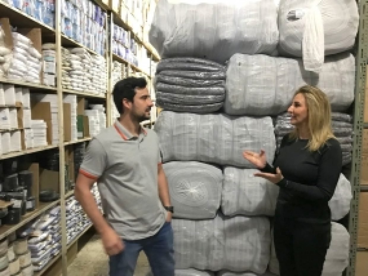 Durante a visita às dependências da empresa, nesta segunda-feira (11), a primeira-dama discutiu formas de enviar uma remessa de cobertores que tiveram suas entregas atrasadas em virtude da greve dos caminhoneiros no final de maio.