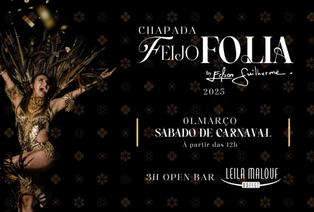 Para os amantes da boa comida, o renomado buffet de Leila Malouf será um dos destaques do Chapada FeijoFolia 2025. Conhecida pela sofisticação de seus pratos, a chef trará um menu especial que promete agradar todos os paladares. E para tornar a experiência ainda mais completa, o evento contará com três horas de open bar, garantindo que ninguém precise se preocupar em sair para buscar bebidas.
