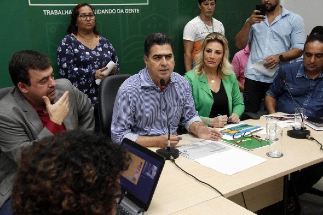 A primeira-dama Márcia Pinheiro e o prefeito de Cuiabá, Emanuel Pinheiro, convocaram o secretariado para uma reunião de sensibilização quanto a Imposto de Renda Federal (IRF)