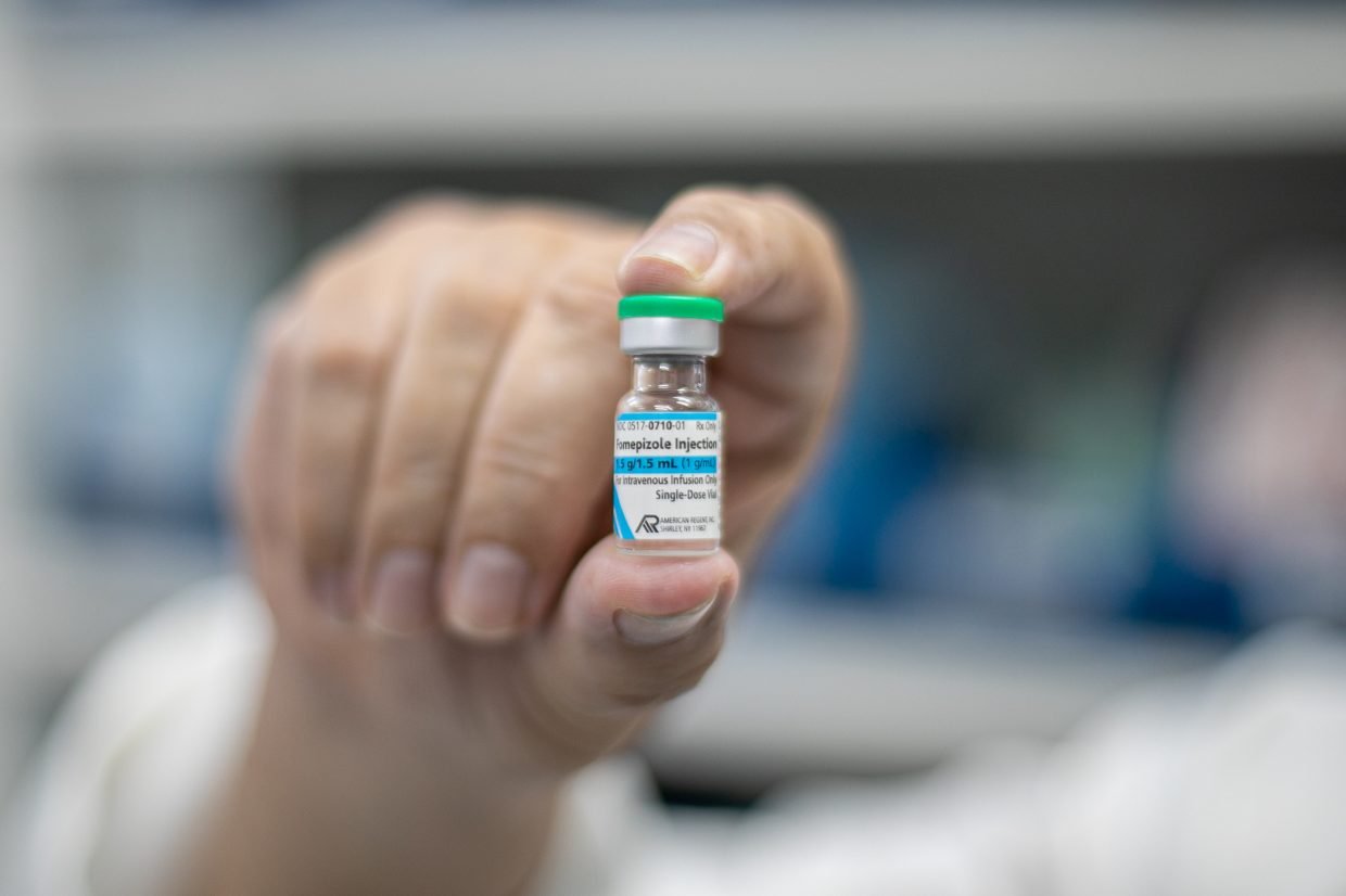 O paciente foi transferido na última sexta-feira (16) do município de Várzea Grande e recebeu tratamento com o antídoto Fomepizol. De acordo com a Secretaria, ele recebeu a primeira dose do medicamento no domingo (19) e a segunda na manhã de segunda-feira (20). O Fomepizol atua como inibidor da enzima álcool desidrogenase, impedindo que o metanol seja metabolizado pelo organismo e prevenindo complicações graves.