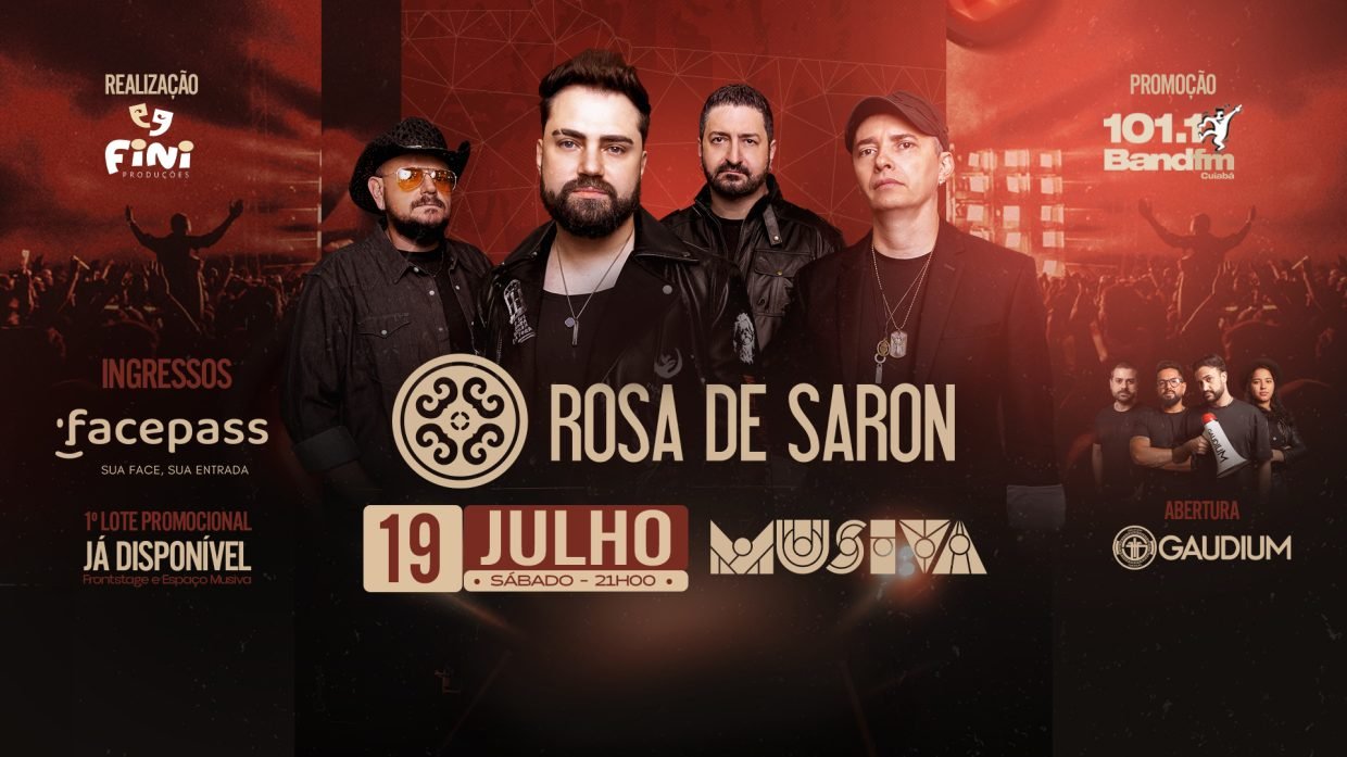 Nacionalmente conhecida por suas letras que abordam temas religiosos e espirituais, a banda de rock cristão Rosa de Saron se apresenta em Cuiabá no dia 19 de julho, às 21h, na Musica, com a turnê comemorativa de 35 anos de banda, fazendo o público cantar e se emocionar com os diversos hits, entre eles, “Sem você”, levando a apaixonada base de fãs a vivenciar um show recheado de significados.