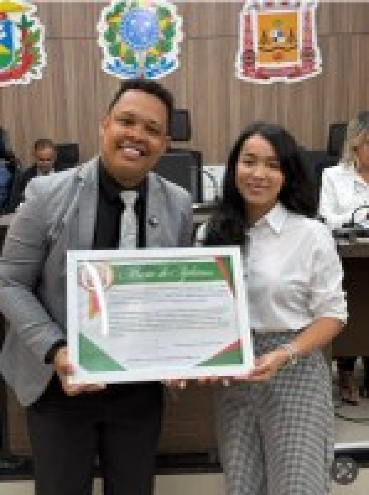 A homenagem reconhece o talento e o dom de Nataly Jovió, que tem levado o nome de Várzea Grande aos palcos nacionais, representando com orgulho a cidade e sua gente.