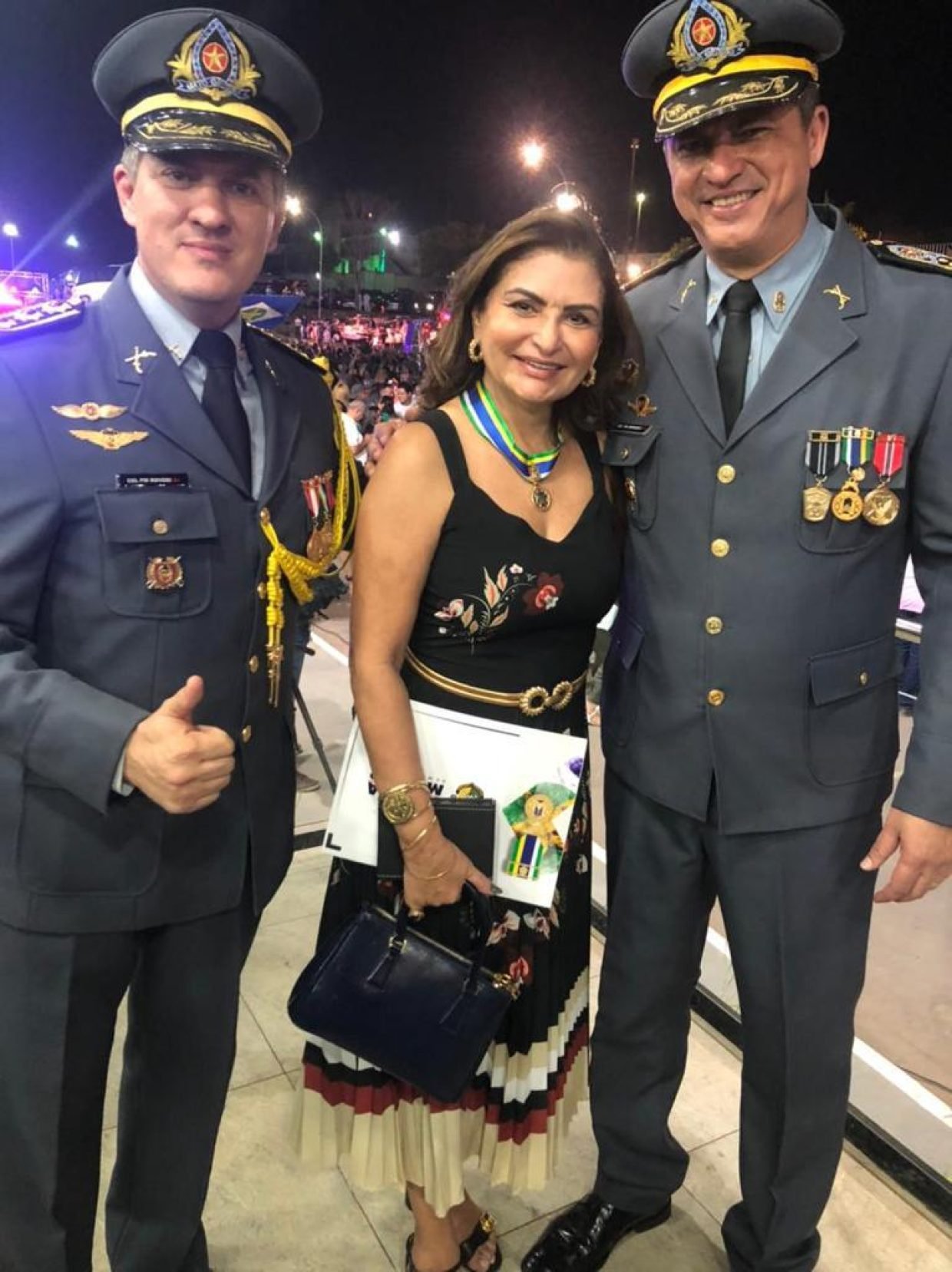 A procuradora de Justica de MT Eunice Helena Barros entre o cel. Roveri e o Comandante Geral da Polícia Militar do Estado de Mato Grosso Cel. Alexandre Correa Mendes, na noite que foi agraciada com a medalha e o diploma “Homens do Mato” outorgada pela PMMT á pessoas que fazem jus ao reconhecimento do título.