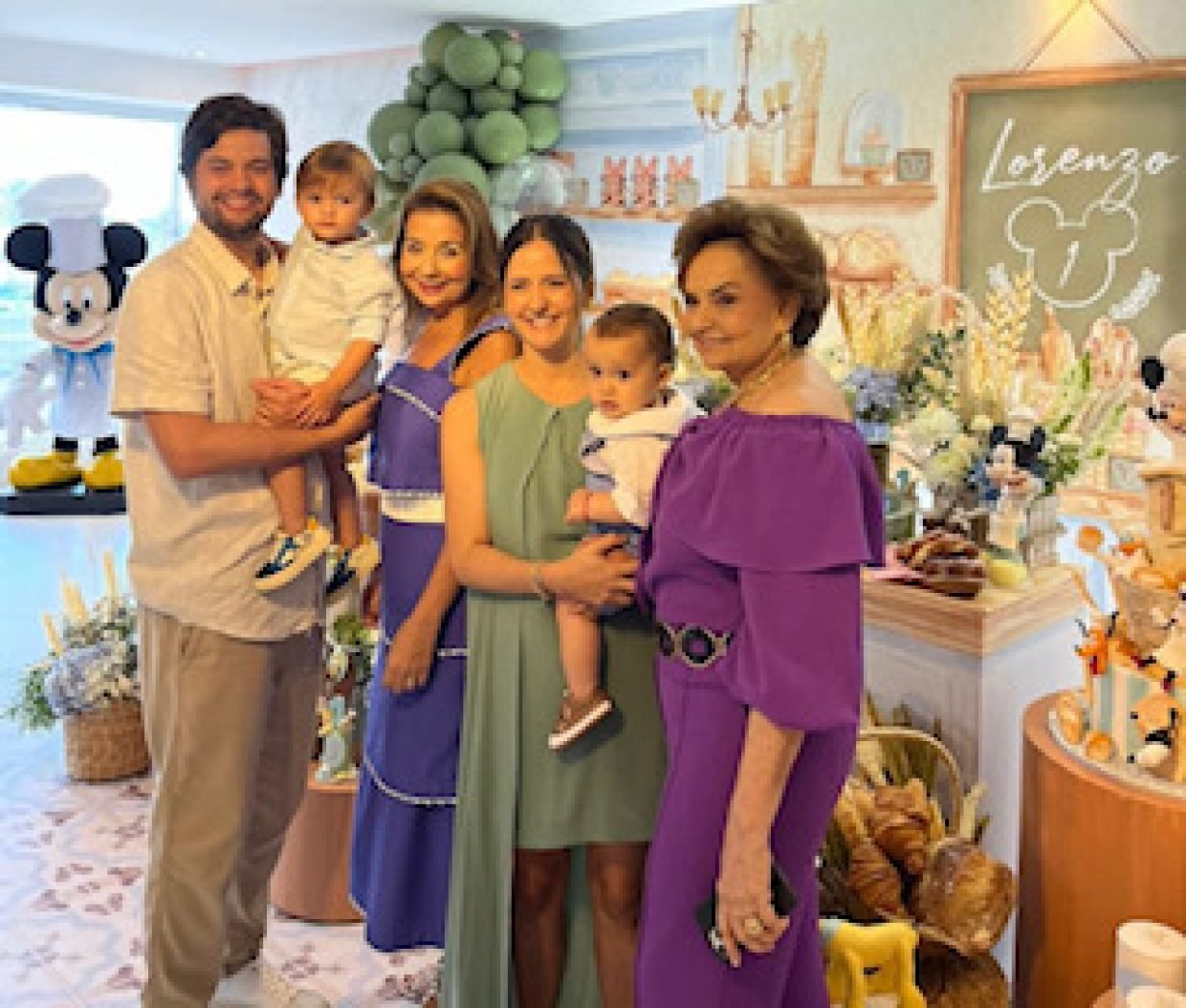 As elegantes Flávia Curvo e Leny Gori ( avó e bisa) felizes na comemoração do primeiro aninho do príncipe Lorenzo, filho da Fabiane. O priminho Pedro Joaquim, com o super papy Kim não podiam faltam.